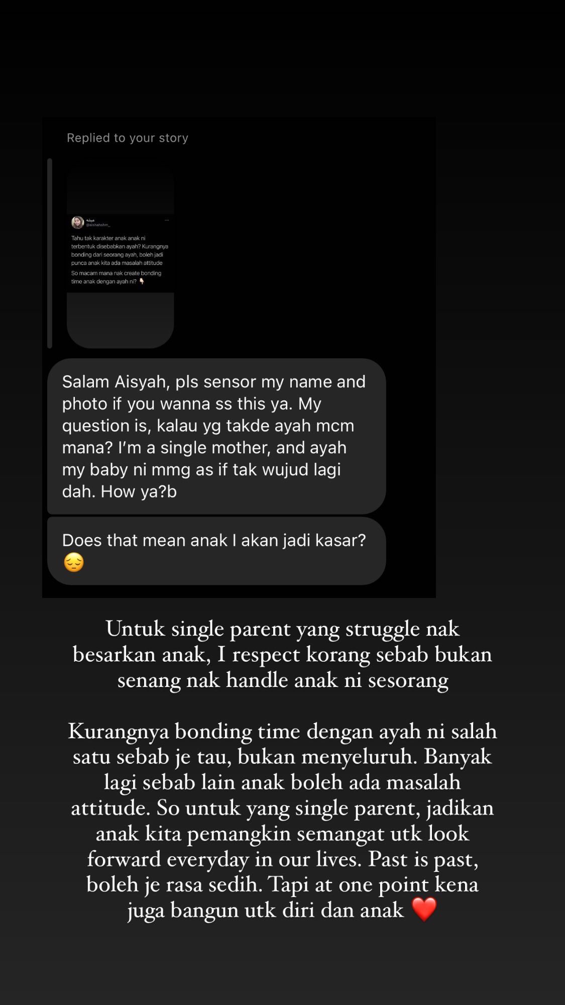 Kita tak fikir pun ada orang yang lagi susah dari kita. Bila dah kantoi seminggu saya diam sahaja dan hanya menangis sahaja. Mula-mula kita orang bergaduh sebab dia hantar gambar tak senonoh dekat perempuan.